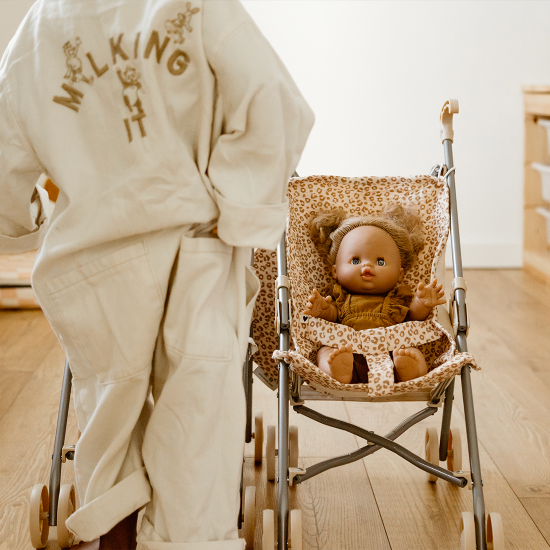 Cette jolie poussette pour poupées et doudous accompagnera votre enfant dès 3 ans dans toutes ses aventures imaginaires. Son assise en 100% gaze de coton, douce et respirante, se détache facilement grâce à un système de pressions afin de la laver en toute simplicité 💛