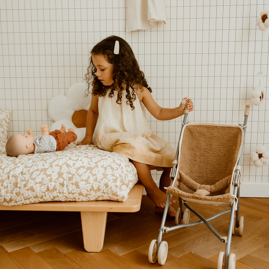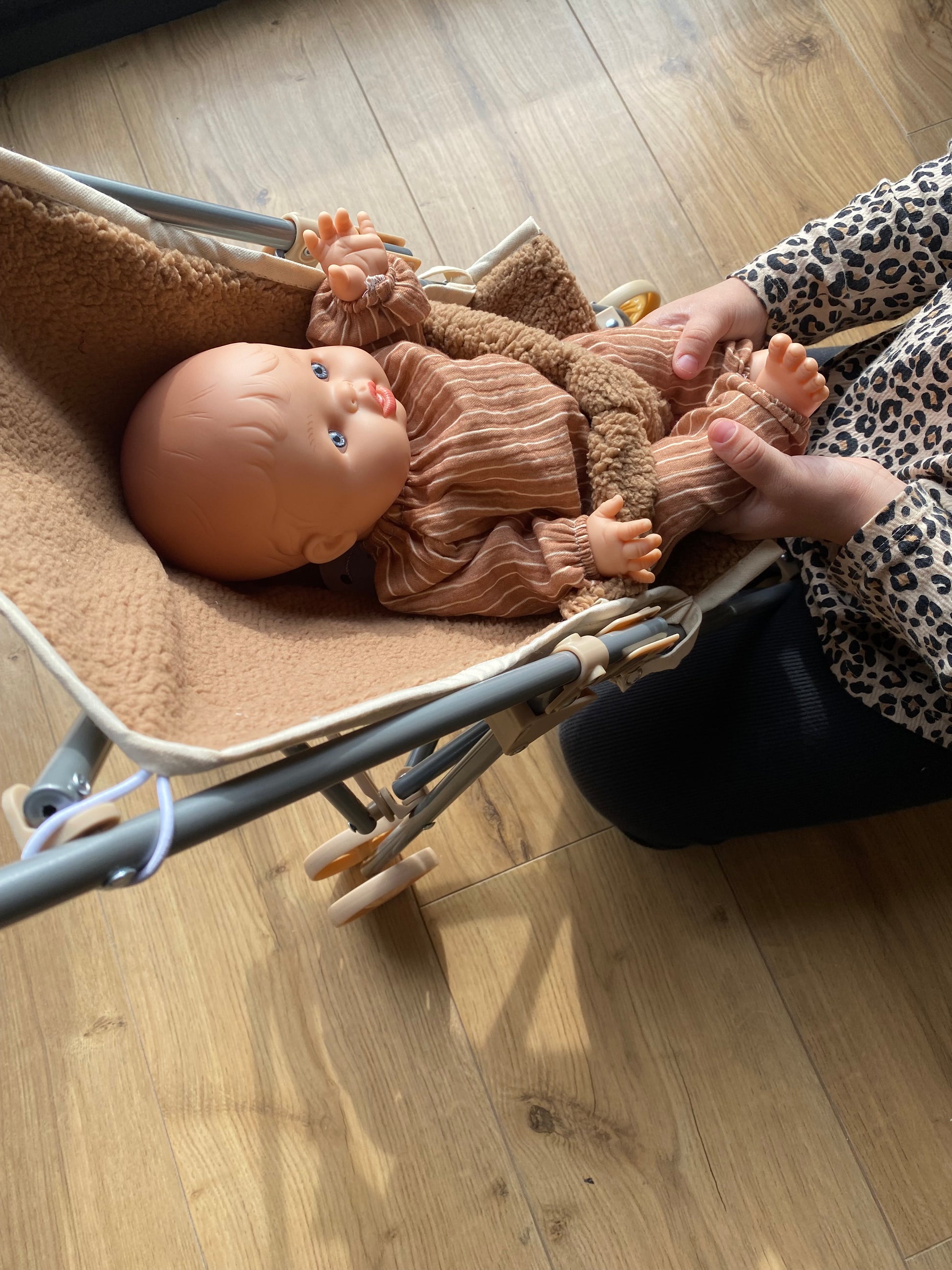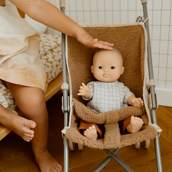 Cette jolie poussette pour poupées et doudous accompagnera votre enfant dès 3 ans dans toutes ses aventures imaginaires. Son assise en moumoute, douce et respirante, se détache facilement grâce à un système de pressions afin de la laver en toute simplicité 💛