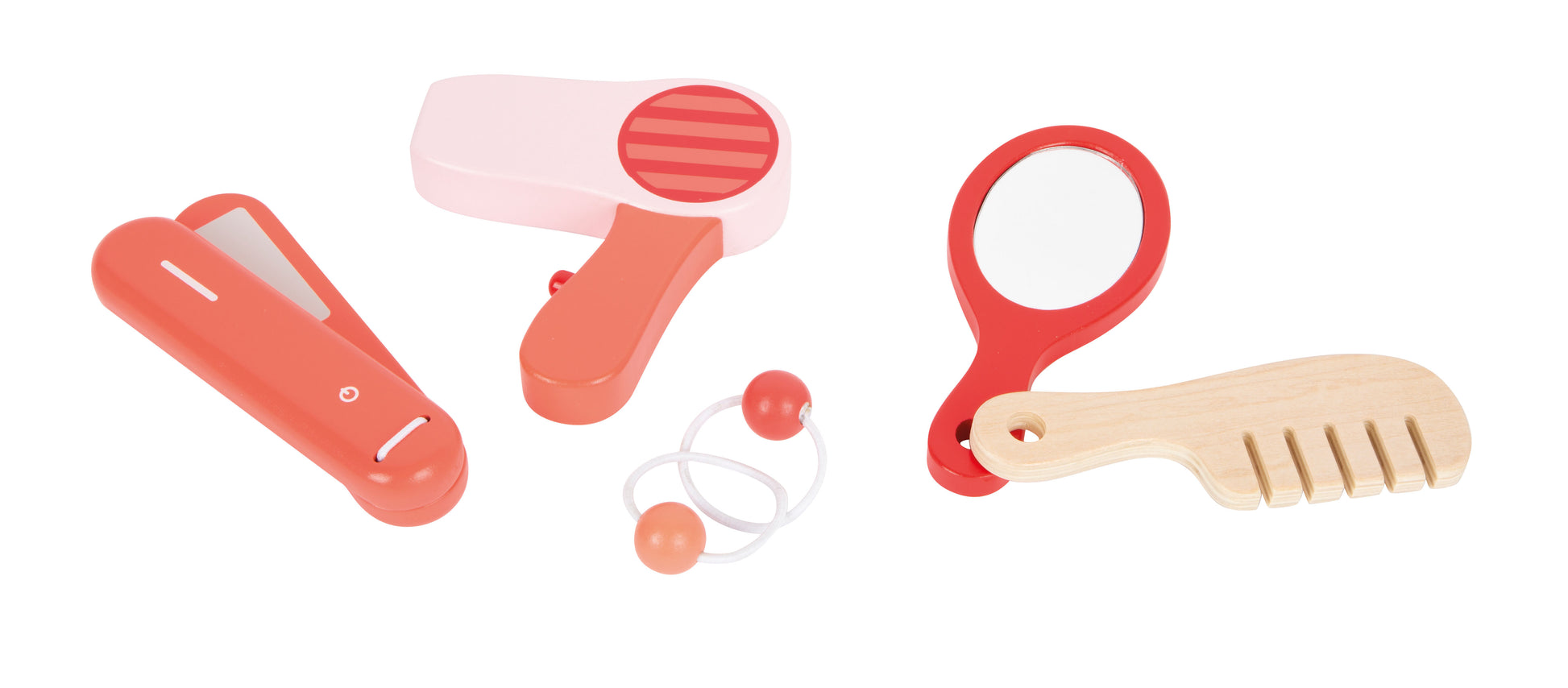 💇 Côté coiffure : fer à lisser, sèche-cheveux, peigne et même de vrais élastiques à cheveux pour un coiffage au top.