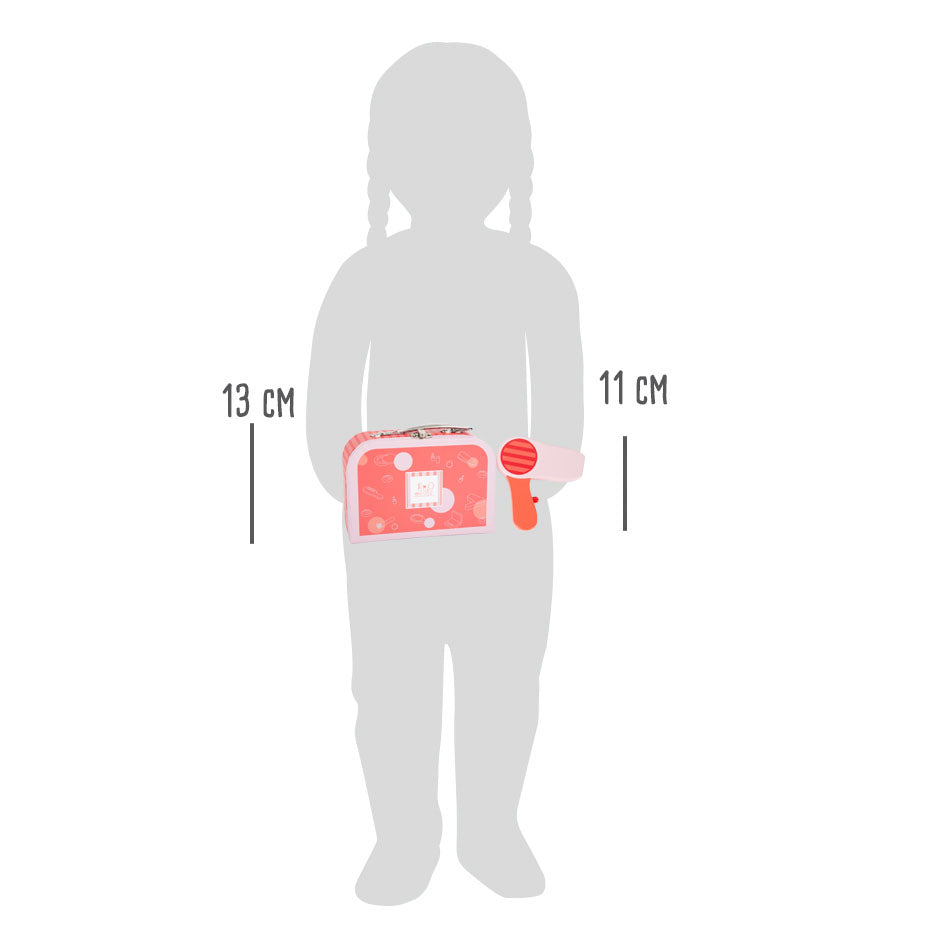 Le tout est soigneusement rangé dans une mallette solide, parfaite pour jouer à la maison ou emporter partout. Les charnières souples en caoutchouc sont pensées pour la sécurité des petites mains : aucun risque de pincement !